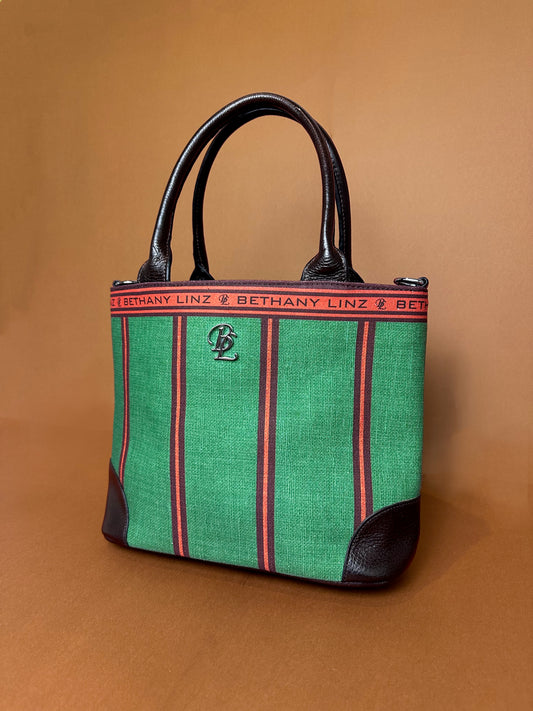 With genuine leather handles, leather base with studs, sturdy cotton canvas that showcases Bethany's timeless designs, these totes are a must have this season!